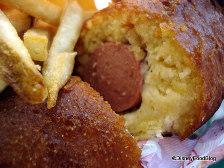 My wife bought one from a cart in Frontierland and was very disappointed. The corndog had been sitting under a heat lamp for way too long.