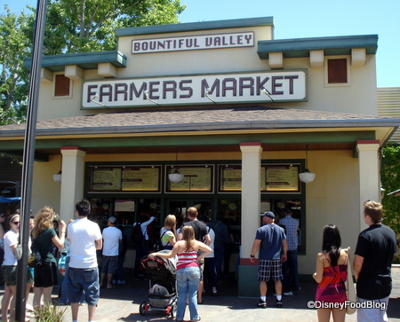 Update: Bountiful Valley Farmers Market has gone by the wayside with the California Adventure reno; find corn dogs at Award Weiners in DCA and at the Red Wagon in Disneyland Park!