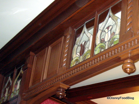 Cafe Orleans (known as Creole Cafe until 1972) started out as a counter-service restaurant, but was refurbished into a table-service restaurant in 2006. The decor of the restaurant includes its famous stained-glass, which accents rich color choices and dark-wood walls and tables.