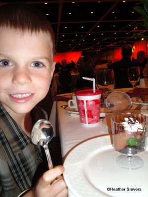 You ready for dessert? I think our dessert course was approximately an hour long. Something very nice about the meal was that no one was trying to rush us along. The cast members were very attentive, keeping our drinks topped off, offering coffee and clearing away the dirties. Our table was centrally located to each buffet, but it was directly next to the dessert table. This was so much fun for our boys. They’d head over, grab something to try, come back, taste test. If they liked it, they’d finish it off; if not, they’d go back for something different. Heavenly.