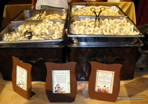 Both were bare naked and you got to choose your sauce and ingredients to customize your dish. The sauce choices were tomato pomodoro and classic beurre blanc (white) sauce. The add-ons were aplenty and included olives, spinach, garlic, sun dried tomatoes, wild mushrooms, Andouille sausage, parmesan cheese, and ratatouille mix. After you make your choices, the chef cooks it all up right there in front of you. It really looked yummy. Maybe next time.