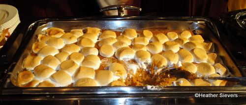 My boys and husband had the prime rib, and they ate every bite. There was also sweet potato casserole (yummy but not as sweet as I usually like mine) with toasted marshmallows, smashed potatoes, seasonal vegetables, baked Alaskan salmon, savory herb and sun dried berry stuffing (amazingly flavorful, especially when drenched in gravy), and roasted pork loin with cinnamon apple rum compote. The pork was the only dish that wasn’t a hit at our table — too much cinnamon.