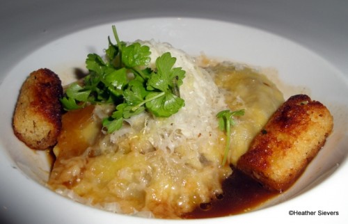 My second favorite item of the night was also off of the appetizer menu. Ravioli of caramelized onion with Comte cheese (can you tell I love cheese?), roasted veal broth and toasted brioche. The onions were sweet in flavor and combined with the broth, it was simply divine. We had this devoured in about 2 minutes flat.