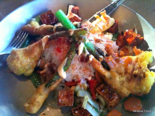 Another table service restaurant which is an incredible dining experience for vegetarians is ‘Ohana. Typically a feast of steak, chicken, pork and shrimp, the vegetarian plate was overflowing with tempura broccoli & asparagus, fried BBQ tofu, steamed rice and lots of veggies. Seriously, this platter served ONE person!