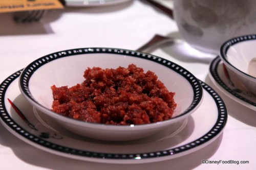 While the menu is secondary to the show here in my opinion (!!), I still had some lovely eats. I was very lucky to tag along with Theme Park Mom‘s Leigh Caldwell and her family for the evening, so I had the chance to take more pics than expected (yay!). Also, Sarah Holodick sent along a few of her photos and reviews from the restaurant, which we’ll use to supplement the reporting here! The more, the merrier!