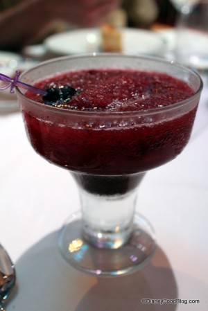 This was our first dinner on the ship, so I started with a frozen drink (the Blueberrilicious, with Tequila, blueberries, passion fruit, triple sec, and sour mix). Very strong, and not sour enough for my liking… but a good start nonetheless!