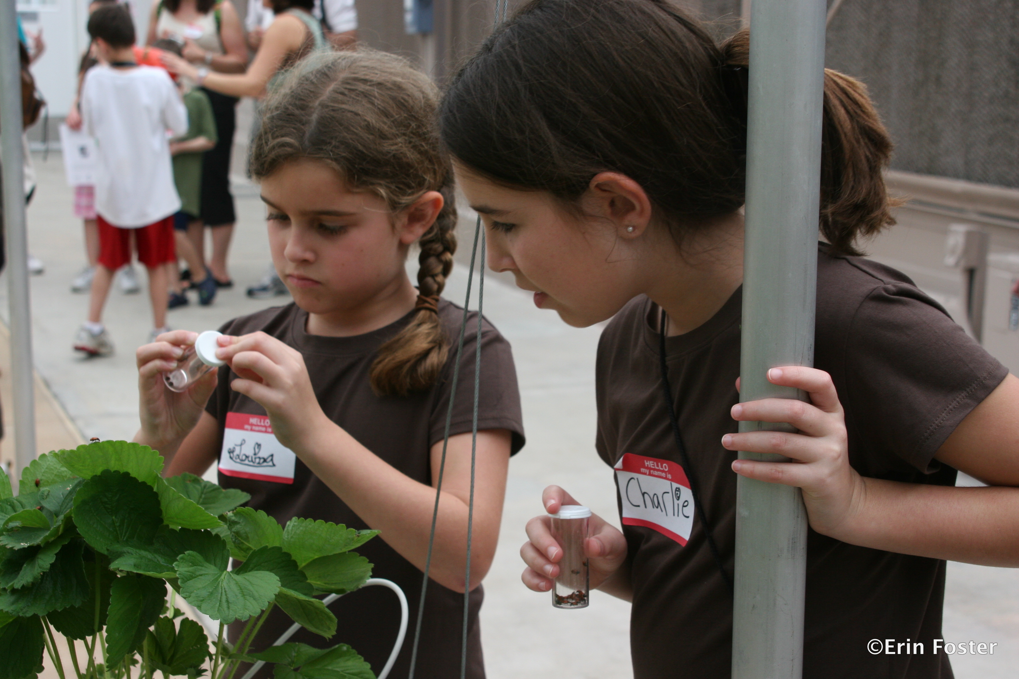 After the snack, and a quick squirt of hand sanitizer, the children on the tour are instructed to open their containers of ladybugs. These insects are friendly to humans, but are predators of many creatures that are harmful to plants. They are used as a natural, non-toxic from of pest management. My kids ADORE this part of the tour. They have a wonderful time exploring the plants and deciding which are most in need of ladybug attention.