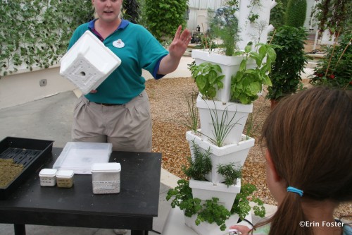 After the lab, the tour moves quickly into the greenhouse area. The guide explains innovative farming methods such as nutrient film technique plant feeding and hydroponics — that’s the method of growing you see on the Living with the Land ride where the plants are hanging in the air, growing with no soil. Guests are given instructions on how to grow their own plants hydroponically. Actually doing this myself seemed a little past my black-thumb gardening skills, but the information was thoroughly engaging.