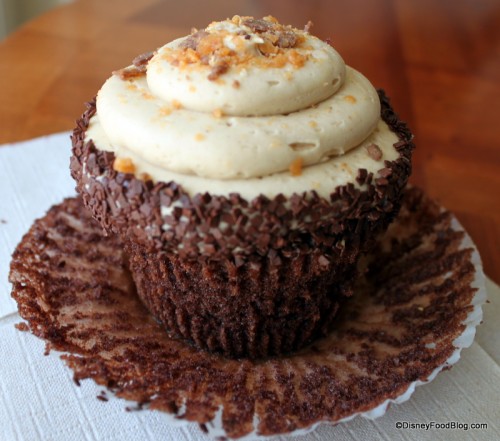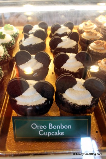 How disappointing the Oreo Bon Bon cupcake wasn’t more like it’s Cape May Cafe counterpart! I got a bit excited for that one, but yellow cake? Vanilla frosting? The soggy Oreos, as you said, are pretty much a Mickey-head given, but seems like an odd choice of ingredients for this flavor. The peanut butter cupcake is lovely looking, though!