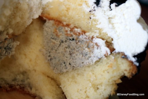 The Oreos stuck into the top were, of course, soggy. I wish they’d stick them in right before boxing up the cupcake, but I get that you need to see the Mickey effect before you purchase as it’s part of the sales strategy… .