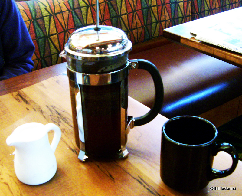 This coffee is grown on the Big Island on the slopes of the Mauna Loa and Hualalai volcanoes and is one of the most expensive coffees in the world. You can order it by the cup, but for maximum flavor and value, we ALWAYS order the French Press Pot ($7.49). It serves two, but there is usually enough for three cups. It is the icing on the breakfast cake, but can be ordered for any meal.