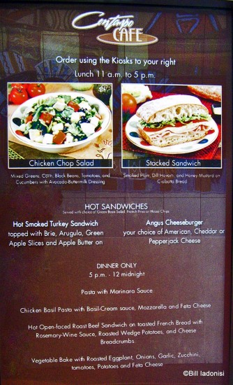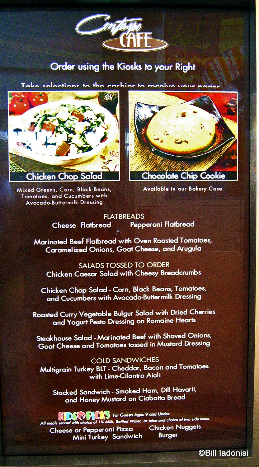 Instead of giving your requests to a Cast Member, you will encounter two electronic menu boards (In Full Color!). Along with the listed menu, rotating pictures of the fare gives you a glimpse of what’s cooking. Just a quick note, the prices are not on the menus.
