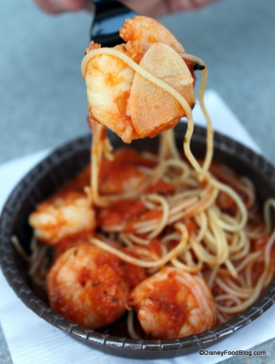 Normally all I get at Italy is the Primavera (yummy and so refreshing when it’s hot at Disney) but the spicy shrimp looks really good. Especially with that nice slice of garlic showing. 🙂