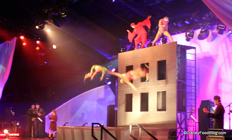 For those who aren’t sure what I’m talking about (I know — “Party for the Senses” can sound a bit odd!), the Party for the Senses is held most Saturdays during the Epcot Food & Wine Festival each year. This exclusive event impresses the taste buds, of course, but it also aims to awaken all of your senses. During this 2 1/2 hour extravaganza, food and beverages flow freely as awe-inspiring entertainment is performed by Cirque du Soleil, La Nouba.