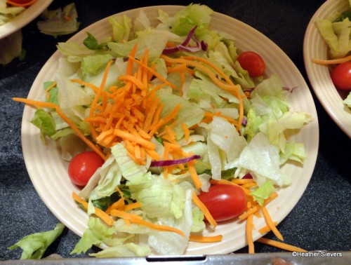 Once you’ve entered the restaurant, it’s time to hit the buffet! You’ll find salads, fruit, and desserts in the center, and main entrees around the outsides of the buffet.