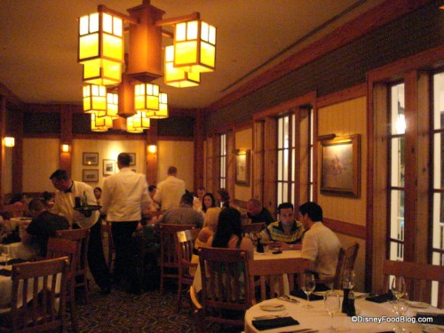 It’s interesting… the decor really looks as if it would fit better at The Wilderness Lodge. Maybe it’s those lamps. This is one of those places I’d love to try, but probably won’t get around to anytime soon as one of my party is a vegetarian and, while there is butternut squash ravioli on the menu, there’s really not enough variety to make it worth his while (which makes sense, it being a steakhouse and all!)