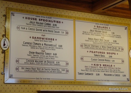 With all of these delicious looking items, it was really hard to choose. We narrowed it down to the Jolly Holiday Combo, the Angus Roast Beef Salad, the Waldorf Chicken Sandwich, and a dessert that wasn’t in the case earlier, a Mini Apple Pie! The presentation of the food is very cute, all dishes are served on a tray with a “newspaper” lining that appears to be a vintage newspaper from January 17th. I was curious to see if this date was significant in Disney (particularly Mary Poppins) history so I checked out This Day in Disney History to find that there are several Disney events that took place that day. I have no idea if this date was chosen on purpose, it would sure be fun to know.