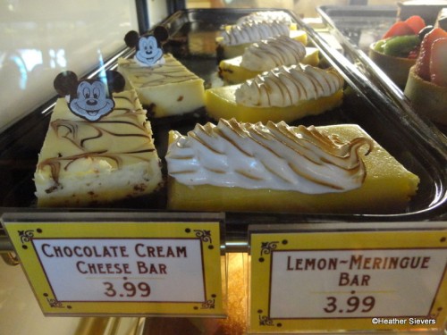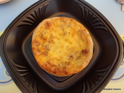 After checking out everything in the cases my friend and I decided on a few early morning treats to try. We purchased a Ham & Cheese Quiche, a Chocolate Mickey Tart, and a Strawberry Lemon Cupcake. To drink we tried the Practically Perfect Punch and the Abuelita (Mexican Hot Chocolate). It was before 10:30, so we decided to taste test these items and then get back in line at around 11:00 for the lunch items! Awesome plan, right?