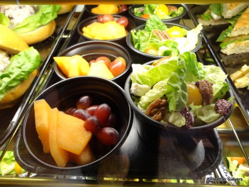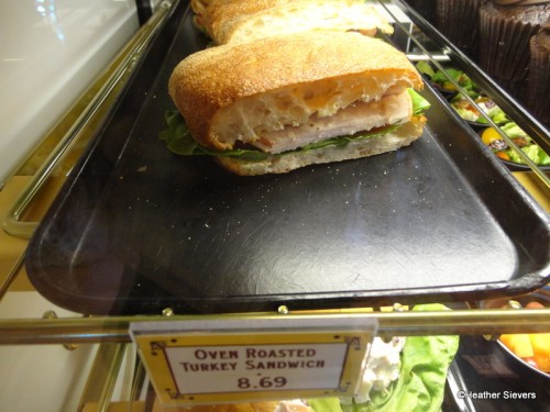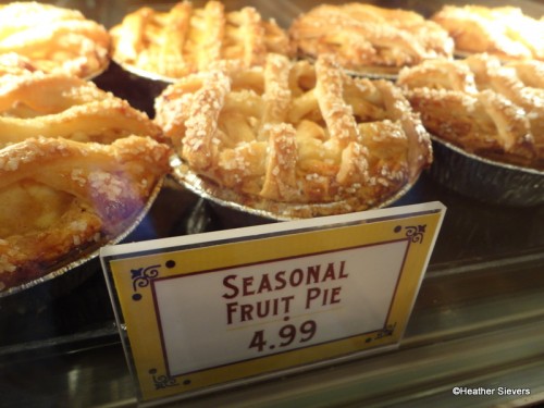 After 10:30, the display cases are re-arranged to display the lunch items. I did like the fact that you could view your food options prior to ordering them. There was even a dessert added that wasn’t there earlier in the morning, seasonal fruit pies, which happened to be apple! Other items in the cases included the following.