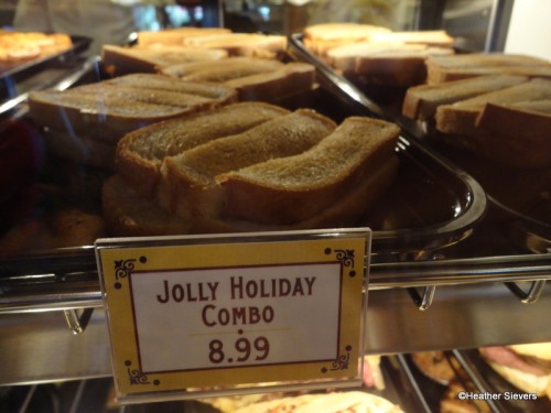 SO, now that it’s after 10:30am, it’s time to get back into line for some lunch eats. All of Jolly Holiday’s foods are pre-made, not made to order. They are prepared in the kitchen and then placed in the display cases and are warmed up as you order them. There is a cute vintage looking stove that appears to house the “soups” of the day, but I didn’t actually see them being served from the stove.