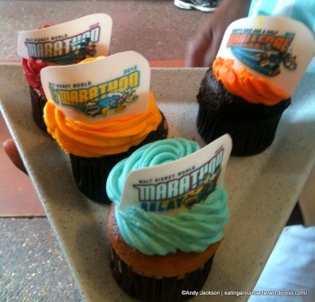 If you’re in Disney World now, stop by the Main Street Bakery to pick up one of these colorful cupcakes celebrating the races. There are versions for the marathon, half-marathon, marathon relay, and the Goofy challenge! Yum!