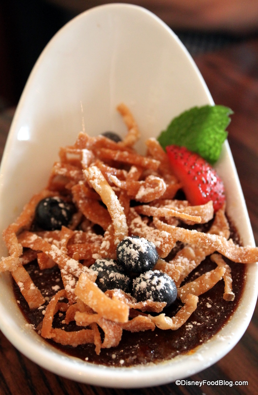 The Crema de Chocolate Abuelita was essentially a chocolate pudding or mousse. Not anything to write home about, but a good chocolate flavor. Knowing the deliciousness of deep, dark Mexican chocolate, I would have expected something a bit less ho-hum, but the bunuelo strips and caramel syrup were a nice touch.