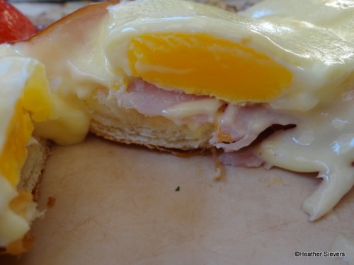 For my “main” breakfast entree, I went with the Croissant Benedict: Poached Eggs with Honey Ham on an Open Faced Croissant with Hollandaise served with Cafe Breakfast Potatoes.