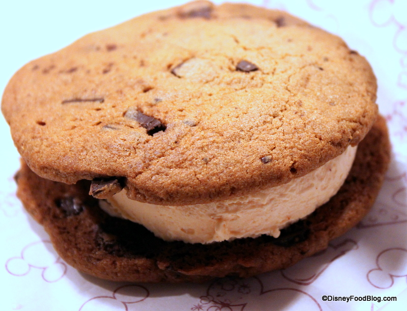 The Toll House Cookie Ice Cream Sandwich has been my favorite breakfast/dessert in WDW since 1984. Does anyone else remember when there were always different varieties of Toll House Cookies available at the Main Street Bakery and different flavors of ice cream, too? My favorite combination was chocolate chip mint ice cream sandwiched between a chocolate chip cookie and a double chocolate chocolate chip cookie. My second favorite was chocolate ice cream sandwiched between two peanut butter cookies.