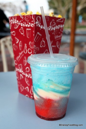 Currently, this spot is one of the only spots in Disney World where you can get the American Dream slushie, a mixture of strawberry and raspberry slushies and soft serve vanilla ice cream! (This the only place where it’s called an American Dream. A similar slushie, minus the ice cream, is found at Sleepy Hollow in the Magic Kingdom.)