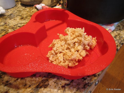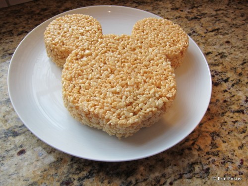 A quick flip onto a plate and — Voila! — a perfect Mickey krispie treat.