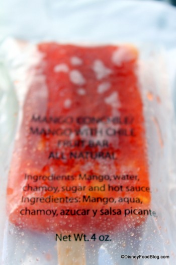 I had Mango slices with chili sprinkles (lime-chili-salt) on top at DCA. Yuch! The Mango was hard like an apple and the chili sprinkles were too strong. I had to find a soft-serve ice cream to get rid of the taste!