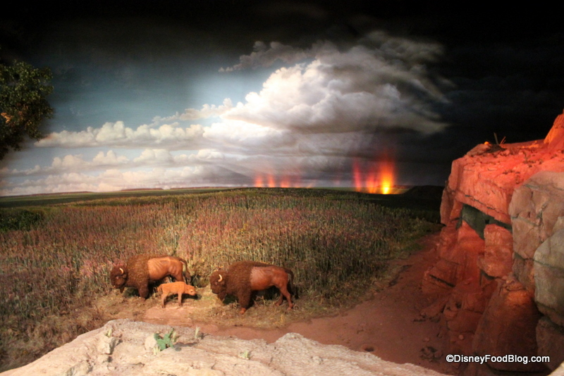 But more on the characters later! First of all, let’s look at the view! The ride below travels through different outdoor scenes showing how plants grow in many different climates and weather. While you dine, you’ll rotate through scenes that include a desert, a prairie, and even a rainforest!