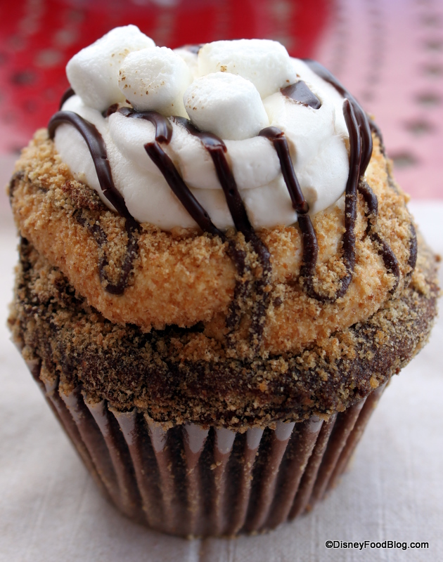 - S’mores Cupcake: Forks at the ready! Dig in to the chocolate cake base to find an inner filling of chocolate chunk frosting (yep, real chocolate chunks!). It’s topped with a vanilla-buttercream-marshmallow frosting mixture with a dusting of graham cracker crumbs. Comforting, toasted marshmallows top this snack.