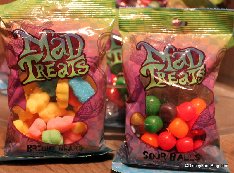 I’d love to see the Grilled Cheese Truck roll in for a visit. Or how about a nacho truck? Yes please. Enough of my two cents, let me show you the line of cute candies and snacks entitled “Mad Treats” that are now available at Candy Palace, Pooh Corner, and other Disneyland Resort sweets shops.