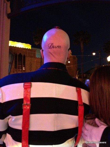 While waiting for the Rabbit Hole to open, which basically meant walking though a long tunnel of mist, Tweedle Dee and Tweedle Dum greeted guests and put on a little banter to entertain us while we waited. I wonder if these guys shaved their heads for the part?