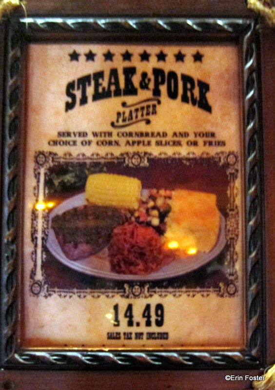 Now, for a whopping $14.49, you can kick up your heels with the brand new Steak and Pork Platter. It’s served with corn bread, and choice of corn on the cob (also new on the menu), apple slices, or fries.