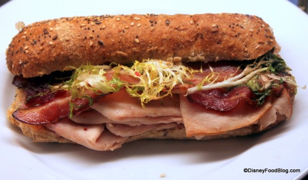 The sandwich also comes with bacon, making it a very nice seasonal, upscale twist to a garden-variety turkey club. (The frisee has seen better days in this pic, which actually shows the display case sandwich.)
