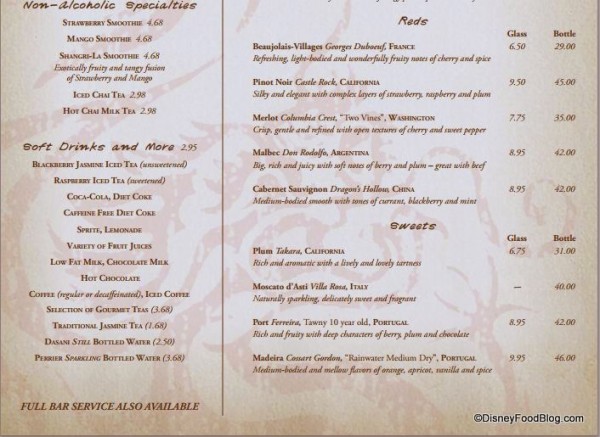 Nine Dragons offers a really excellent prix fixe option for both lunch and dinner. Their Treasures of the Dragon menu includes three courses for a set price, and is also available to guests using the Disney Dining Plan. (Be sure to confirm this if you have an upcoming Advanced Dining Reservation, however, since the rules of the 2013 DDP say that it doesn’t cover prix fixe options.)