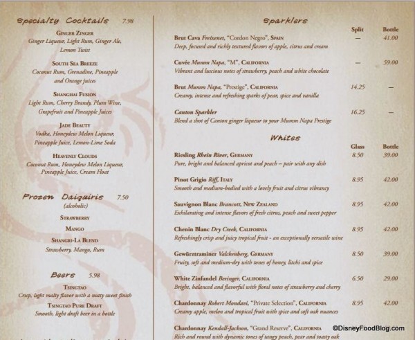 Funny but I have never eaten at the China Pavilion before and I have been going to Epcot since 1982. I think it is because I have lived near two Chinatowns (S.F. & Honolulu) and have been spoiled with killer Chinese cuisine. So for this upcoming trip I wanted to find someplace I have never done… and behold… The 9 Dragons is the only place left to do! (i’m avoiding the princess show at the Akershus, wanting the return of real Norwegian food).
