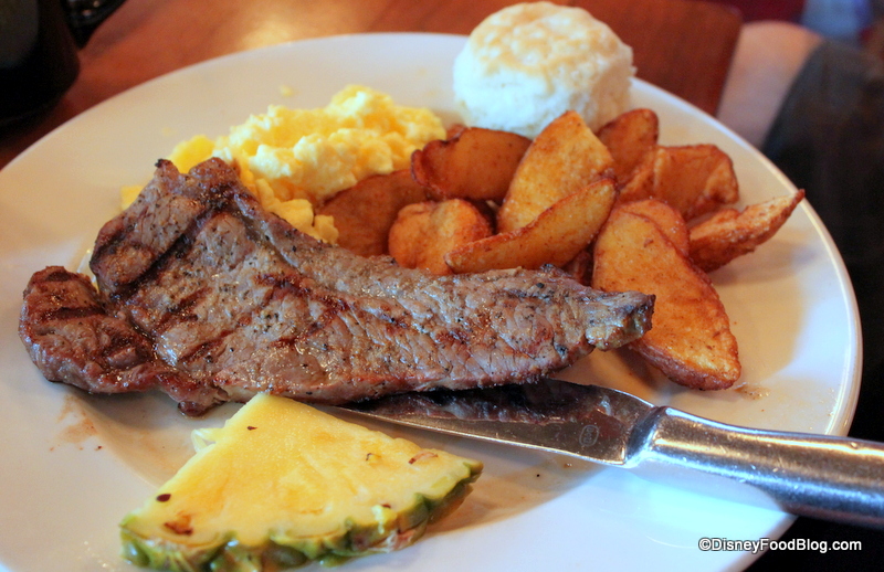 Dipped in a little of that fresh strawberry compote, this breakfast definitely rocks. Now, we can’t really vouch for its ability to keep you going all day long in the parks…that sugar crash is bound to come!