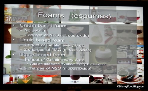 Lindsay took the lead and explained the different fun things we would be trying today, like making foams and sphereification. She is an excellent seminar leader — informative, entertaining, and poised…and quite a fast talker, so be prepared for a lot of info very quickly!