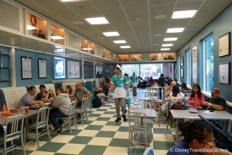We are usually pretty disappointed by the counter-service options at Disney California Adventure and Disneyland (Jolly Holiday Bakery excepted!), but we waited in the 20-minute line with our hopes high. Who wouldn’t want to eat in a life-size replica of the stylish drive-in from Cars?