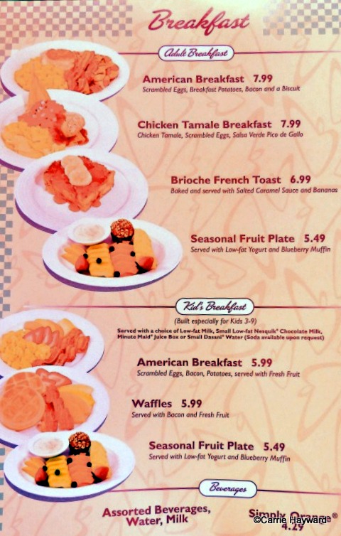 The breakfast menu is short, but it offers a few items that are departures from the typical Disney counter-service breakfast.