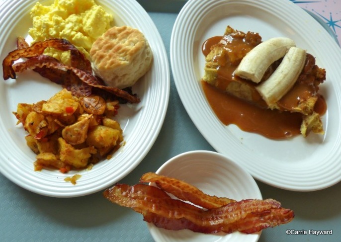 My breakfast was hilariously disappointing. I appreciate Disney’s efforts to jump on a trend, but if they’re going to name it “Brioche French Toast with Salted Caramel Sauce,” there should probably be some brioche and some salt involved.