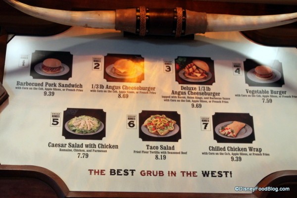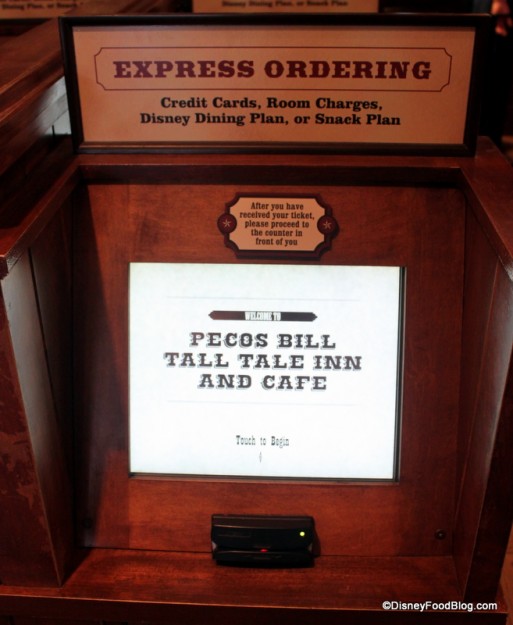 Pecos Bill Tall Tale Inn and Cafe (known to many just as “Pecos Bill’s”) in the Magic Kingdom’s Frontierland is extremely popular. I would venture a guess that this dining location and Cosmic Ray’s Starlight Cafe see the majority of the counter-service traffic in the Magic Kingdom.