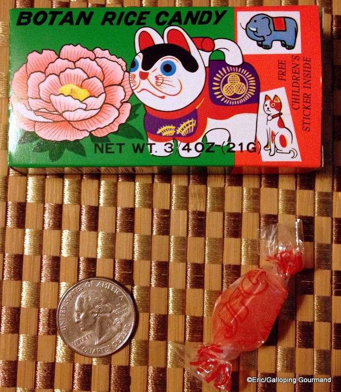 I first tried Botan Rice Candy at the long gone Japanese Village and Deer Park in Buena Park ,California. Such a beautiful, peaceful place . I was very “into” everything Japanese then. I was nine. My mother and I would share the set lunch which offered skewers of beef or chicken yakatori, a mound of sticky white rich, broth, sunimono (pickled cucumber) and mandarin oranges. Our dessert was green tea ice cream and I always had a box of Botan Rice Candy to take home. It is sad though that the prize is just a sticker now. I remember when it was a small plastic animal which I collected. I have only seen the candy since at Chinatown and it is five times what I used to pay for it. I wonder why.
