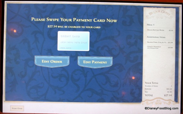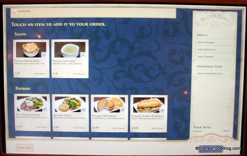 From this point on, the ordering process is similar to other kiosks around the resort. The pictures are a great touch, though. It’s always helpful to see what you’re thinking of ordering before you commit!