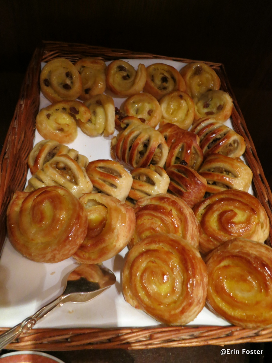 Next to the lovely jam selection were one-inch-deep bowls made of wafer ice cream cones. The idea was to use the “cone” as a transport vehicle for your jam, allowing you to take a nice serving to spread back at the table, without getting the sticky sweet all over your eggs or other savories. So clever!