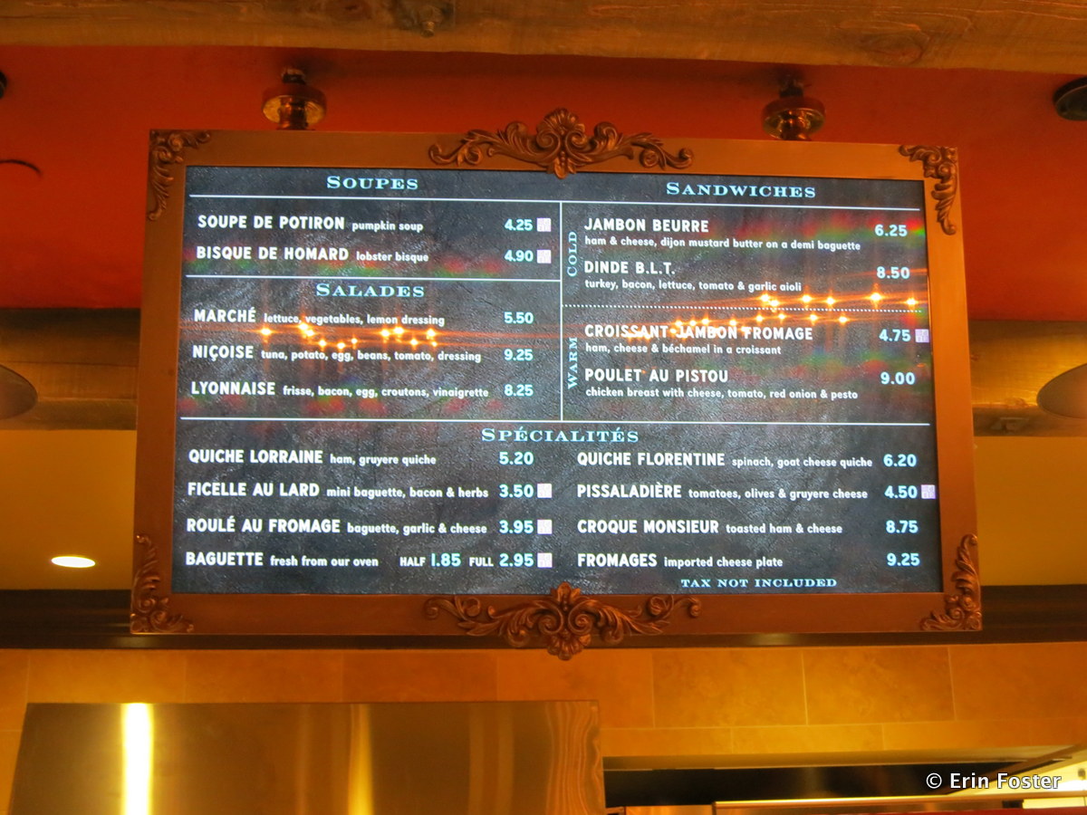 Theme park quick service food is often bland, appealing to the palate of the least adventurous potential guest. The Les Halles items were bold, featuring strong, authentic flavors: pungent cheeses, bitter herbs, and even salty anchovies. I’m impressed that they chose not to cater to the least common denominator. Now more than ever, when I’m in Epcot France, I feel like I’m in real France.