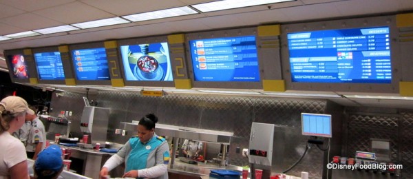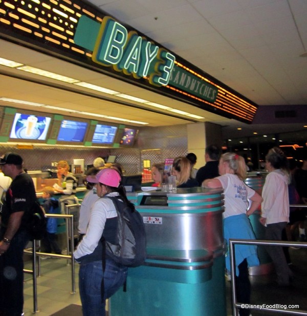 Before joining a queue, you can take a look at all of the menu items available via a laminated menu that a cast member will hand to you as you walk in the door. This is much easier than wandering throughout the restaurant to look at all three bay menus.